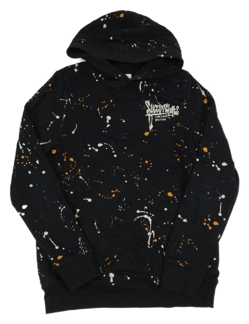 Černá skvrnitá mikina s nápisem a kapucí C&A