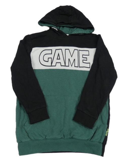Černo-zeleno-bílá mikina s logem a kapucí Stop+go