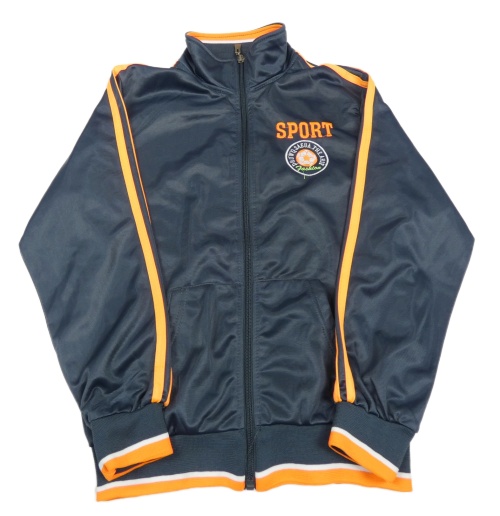 Šedomodro-oranžová propínací sportovní mikina s výšivkou