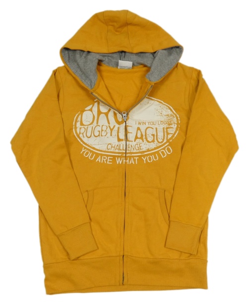 Okrová propínací mikina s nápisem a kapucí Yigga