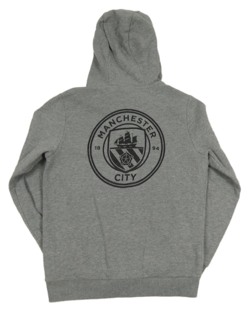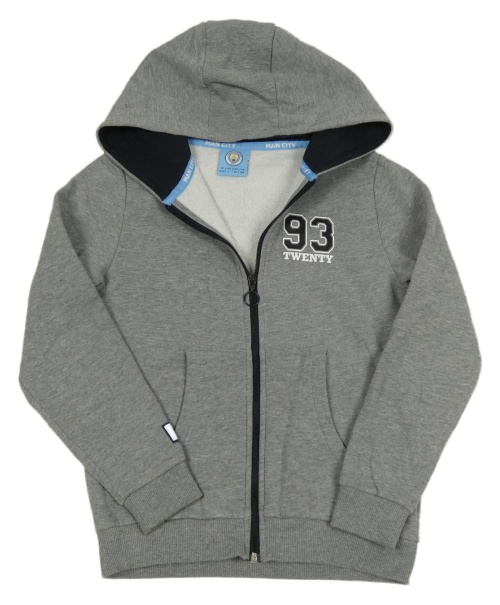 Šedá melírovaná fotbalová propínací mikina s číslem a kapucí - Manchester City