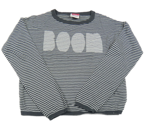 Antracitovo-bílý pruhovaný crop svetr s nápisem Yigga