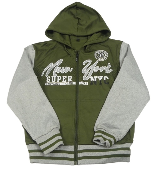 Khaki-šedá propínací mikina s nápisy a kapucí