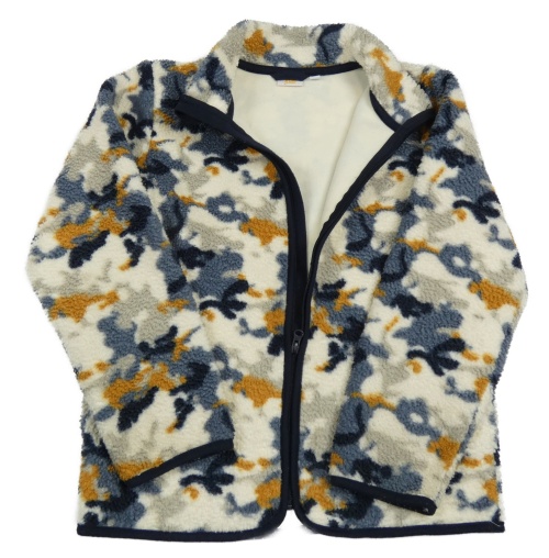 Smetanovo-šedo-tmavomodrá army huňatá zateplená propínací mikina Kids