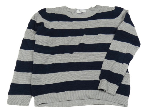 Šedo-tmavomodrý pruhovaný žebrovaný svetr