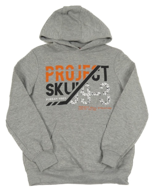 Šedá melírovaná mikina s nápisy a číslem a kapsou a kapucí Y.F.K.