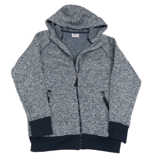 Tmavomodrá melírovaná pletená thermo propínací mikina s kapucí Yigga
