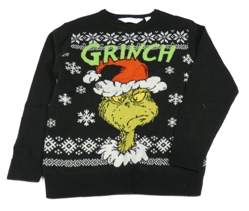 Černo-bílo-zelený svetr s Grinchem a norským vzorem H&M