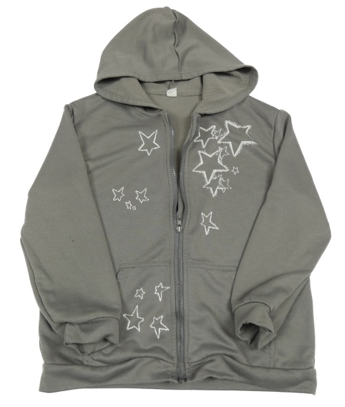 Šedá propínací mikina s hvězdami a kapucí Shein