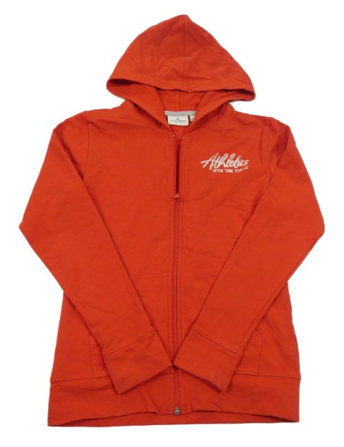 Červená propínací mikina s nápisem a kapucí Tom Tailor