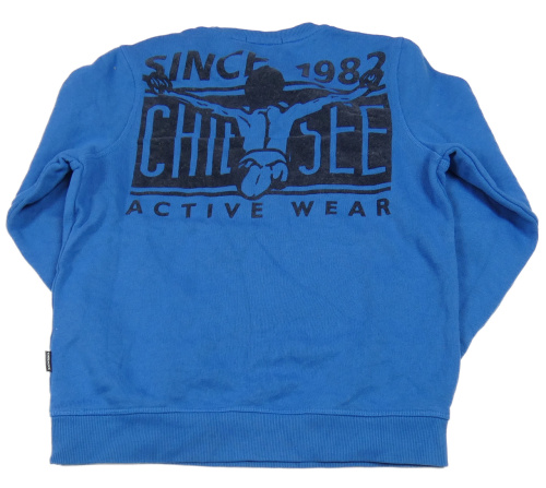 Modrá mikina s nápisem