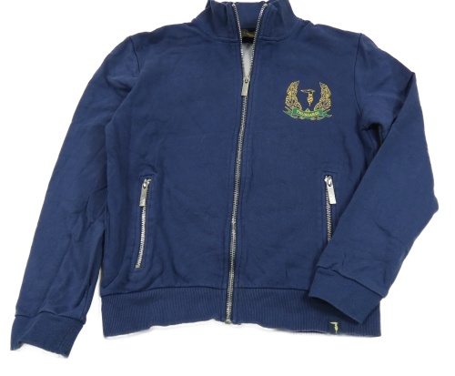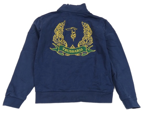 Tmavomodrá propínací mikina s potiskem Trussardi