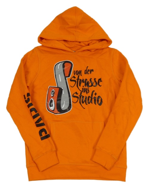 Tmavooranžová mikina s nápisy a kapsou a kapucí JAKO