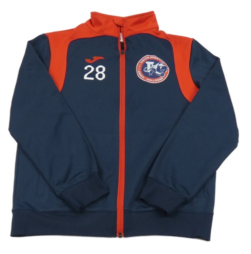 Tmavomodro-červená sportovní propínací mikina s potiskem Joma