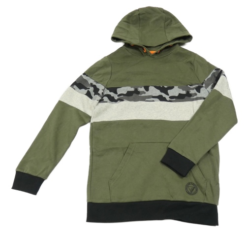 Khaki-army-světlešedo-černá mikina s kapsou se znakem a kapucí F&F