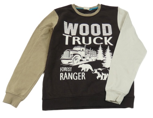 Hnědo-béžovo-smetanová mikina s nápisem a obrázkem kids