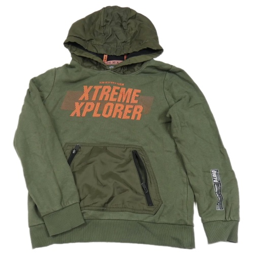 Khaki mikina s nápisem a šusťákovými prvky a kapucí C&A