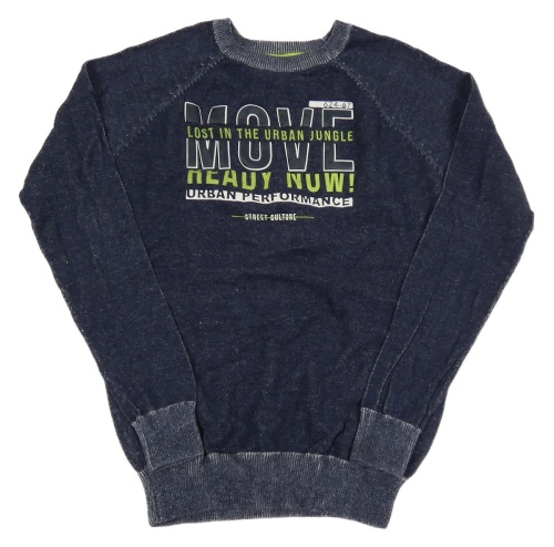 Tmavomodrý lehký svetr s nápisy Y.F.K.