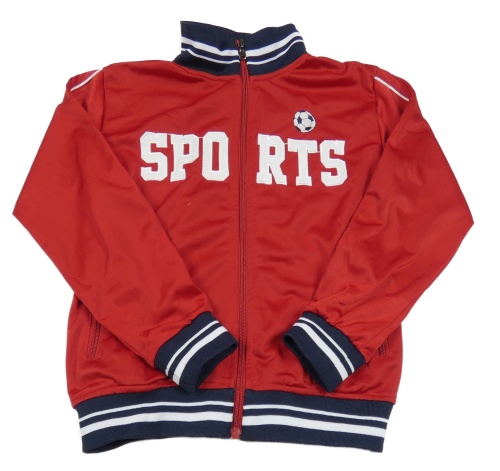 Červená sportovní propínací mikina s nápisem a fotbalovým míčem