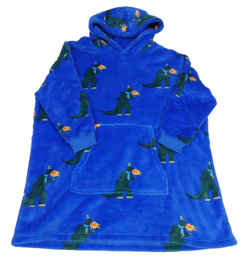 Tmavomodrá safírová chlupatá ovesize mikina s dinosaury a kapucí M&S