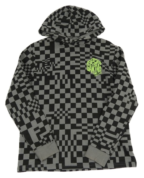 Černo-šedá kostkovaná mikina s nápisem a kapucí H&M