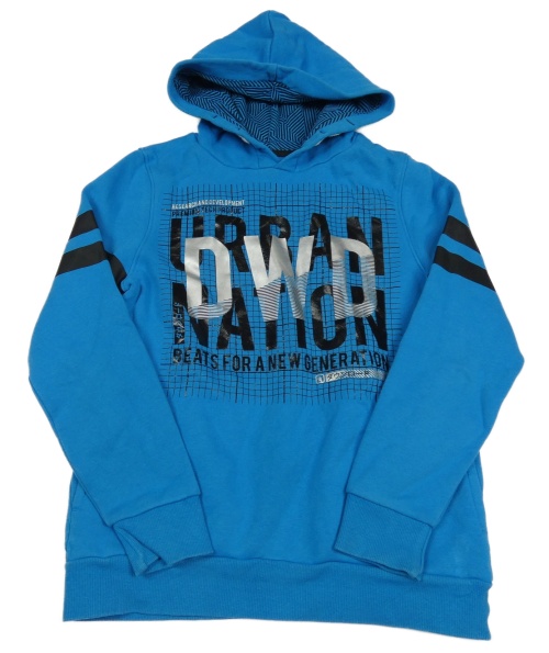 Modrá mikina s nápisy a pruhy a kapucí C&A