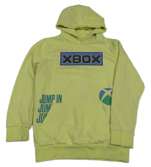 Neonově žlutá mikina s potiskem x-box a kapucí