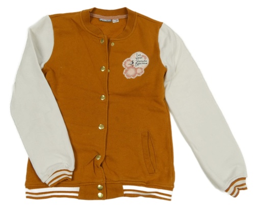 Medovo-bílá baseballová mikina s květy a nápisem Pepperts