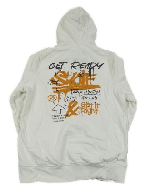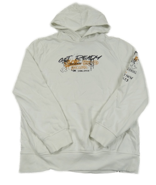 Smetanová mikina s graffiti nápisy a kapsou a kapucí C&A