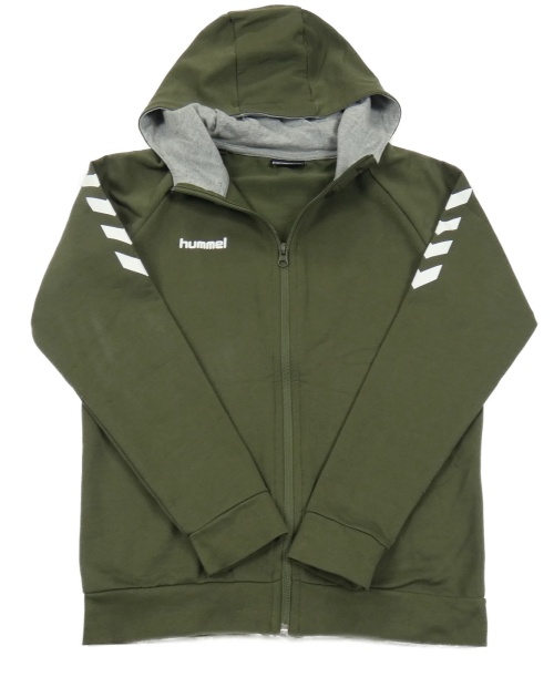 Khaki propínací mikina s logem a kapucí Hummel