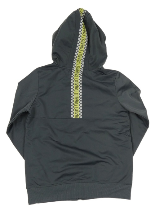Tmavošedá sportovní propínací mikina s potiskem a kapucí
