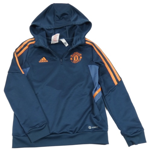 Tmavomodro-oranžová funkční fotbalová mikina Manchester United a kapucí Adidas