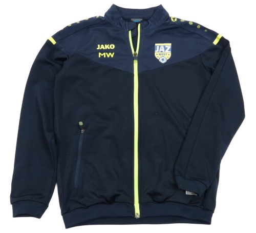 Tmavomodrá sportovní propínací mikina s potiskem Jako