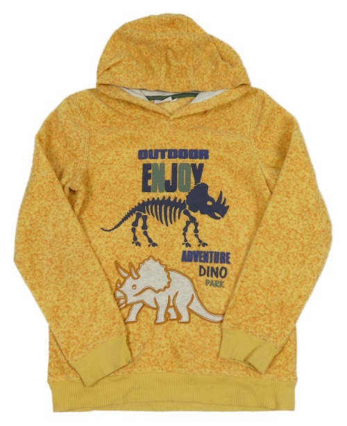 Žluto-okrová vzorovaná fleecová mikina s dinosaury a kapucí Kids