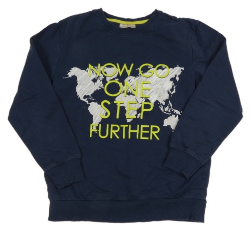 Tmavomodrá mikina s kontinenty a nápisem Destination