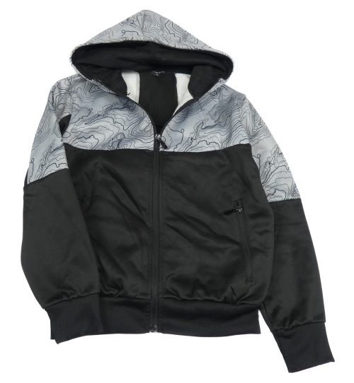Černo-šedá propínací mikina se vzorem a kapucí