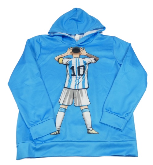 Modrá sportovní mikina s fotbalistou a kapucí