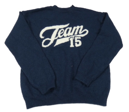 Tmavomodrý vlněný svetr s nápisem H&M