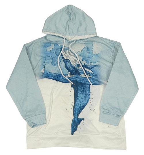 Světlemodro-bílá mikina s velrybou a kapucí