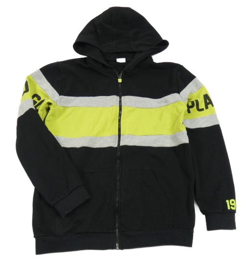 Čero-šedo-limetková propínací mikina s nápisem a kapucí LC Waikiki