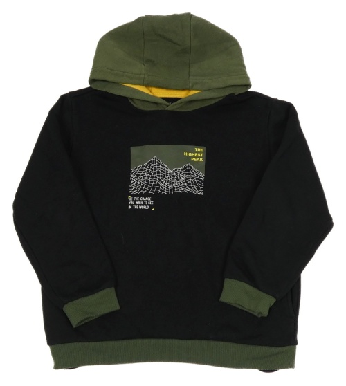 Černo-zelená mikina s potiskem a kapucí