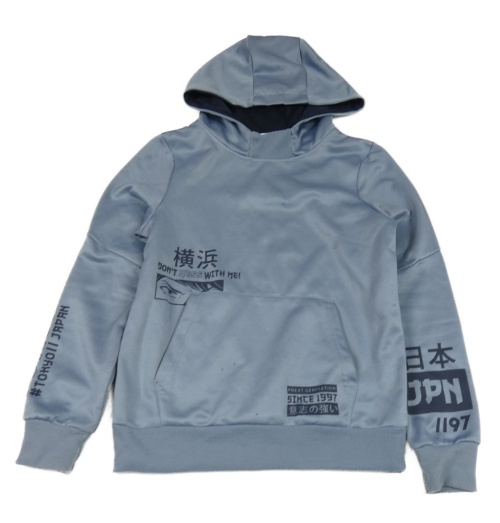 Modrá sportovní mikina s nápisem a kapucí