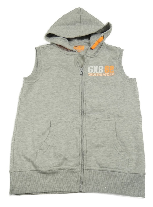 Šedá melírovaná tepláková propínací vesta s nápisem a kapucí Gatonegro