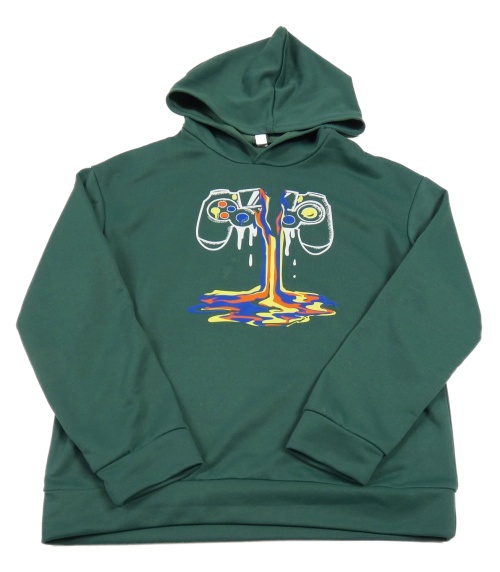 Tmavozelená mikina s ovladačem a kapucí