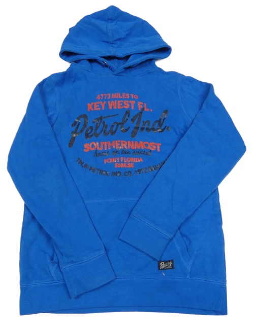 Tmavomodrá mikina s nápisy a kapucí