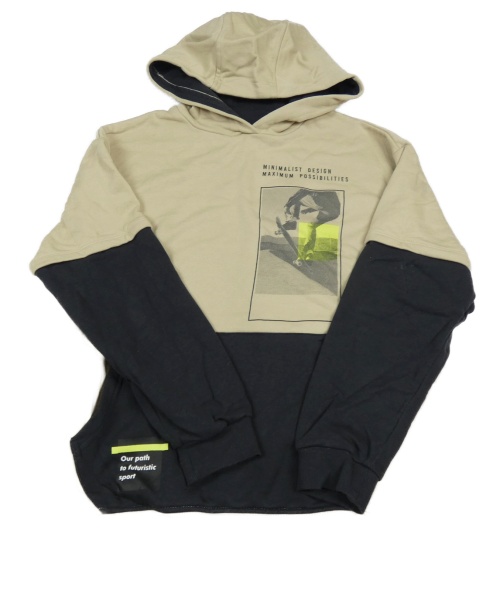 Pískovo-černá mikina se skateboardistou a kapucí Destination