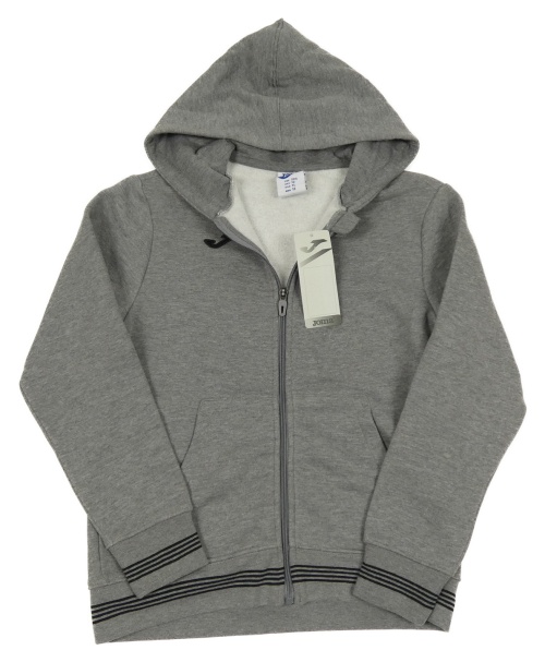 Nové - šedá melírovaná propínací mikina s logem a pruhy a kapucí Joma
