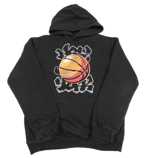 Černá mikina s míčem a nápisy a kapsou a kapucí H&M