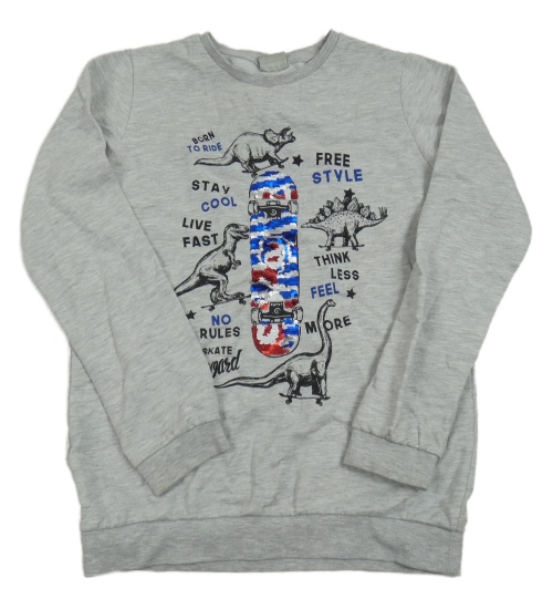 Šedá melírovaná mikina se skateboardem z překlápěcích flitrů a dinosaury LC Waikiki