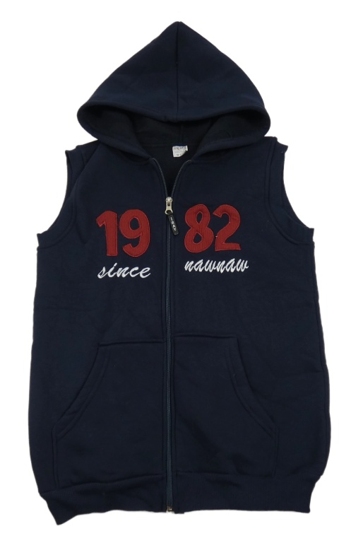 Tmavomodrá tepláková propínací vesta s číslem a kapucí